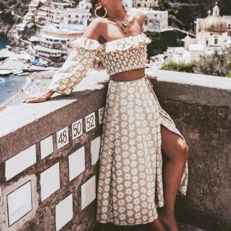 Elegant Suit Double-breasted Off-shoulder Top And Pleated Skirt Womens Clothing